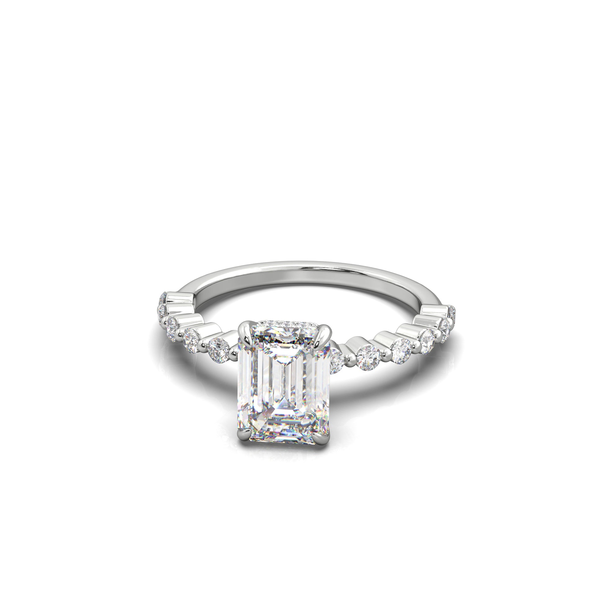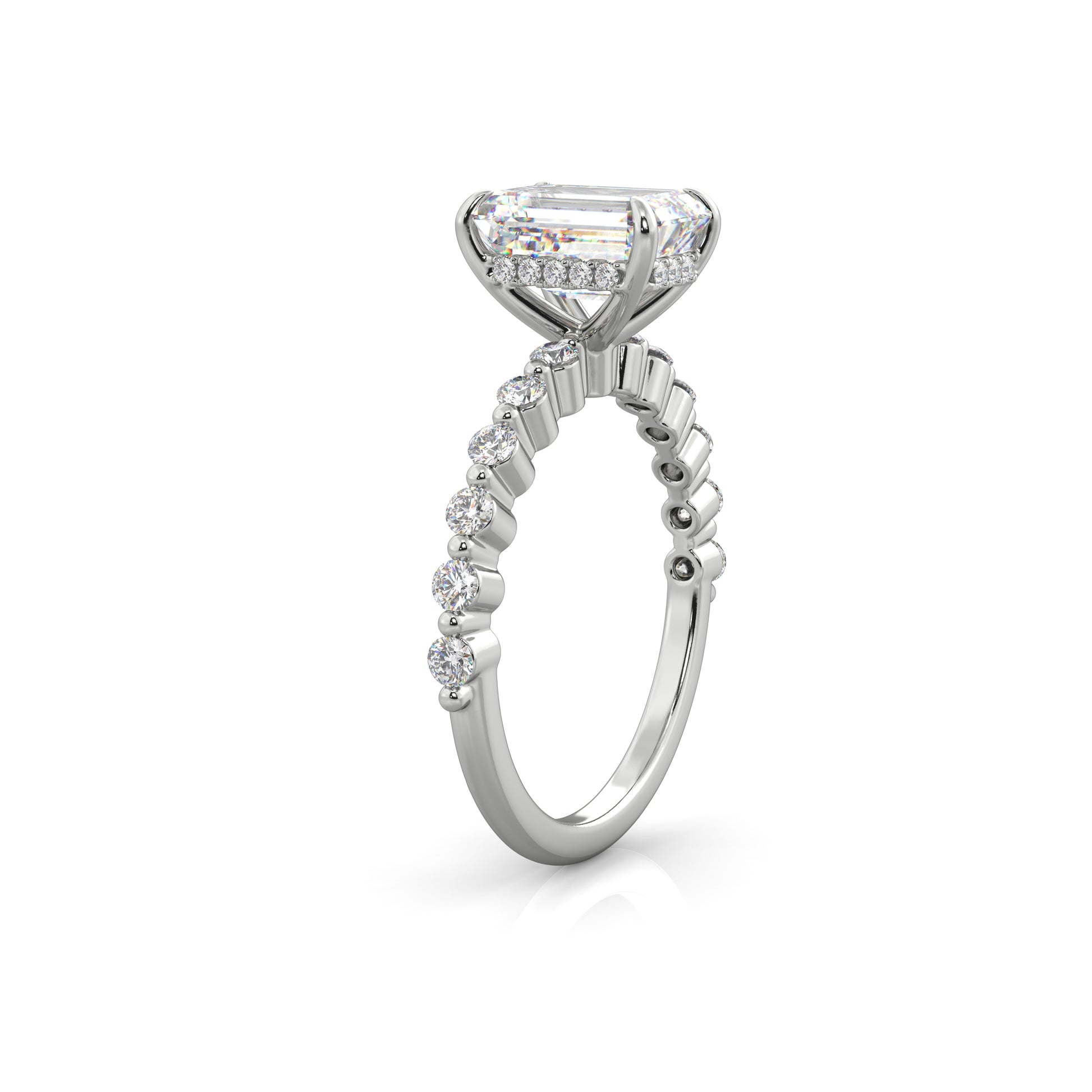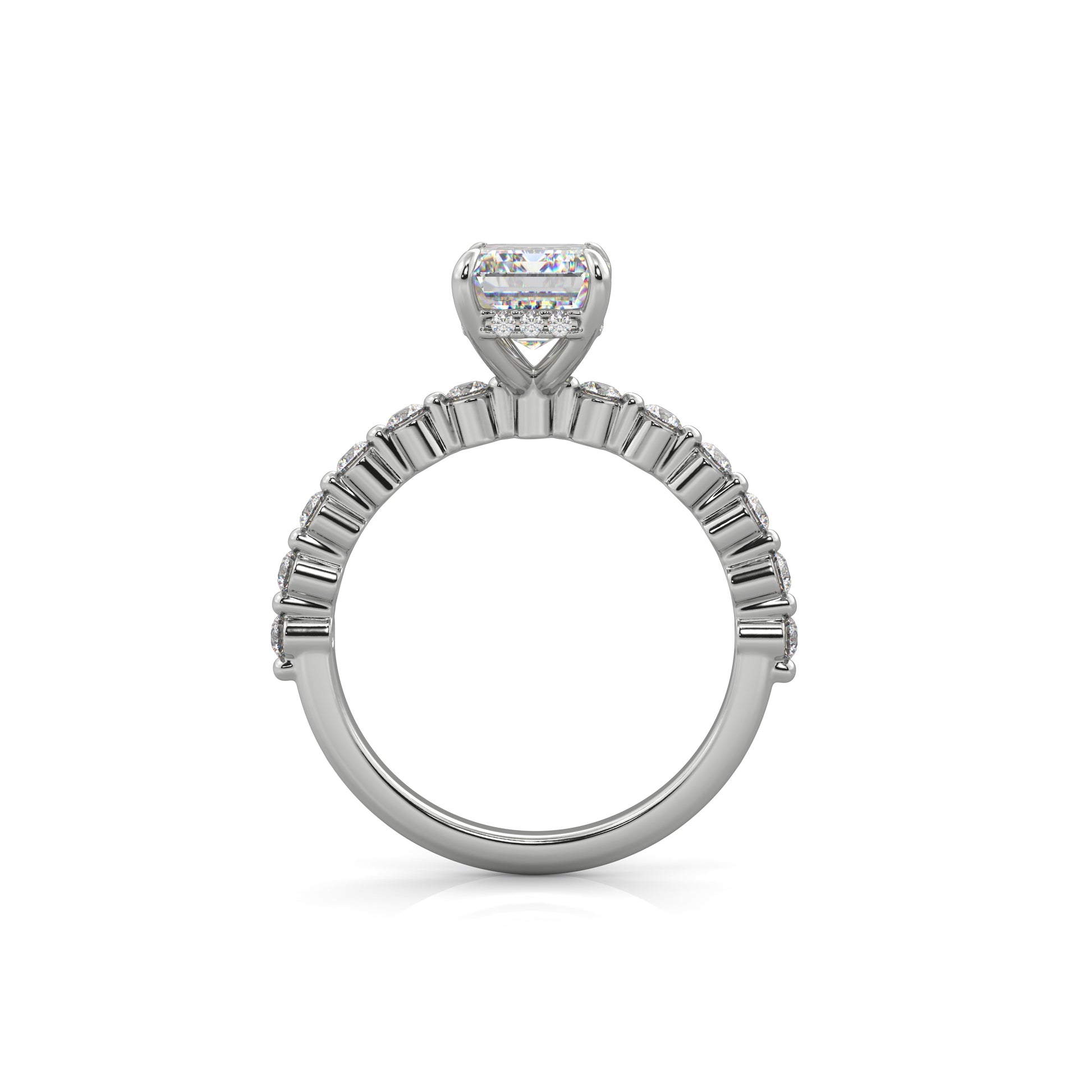 The Aleena is designed to turn heads. With round-cut diamonds lining the band in a shared prong setting, it delivers nonstop sparkle. A hidden halo adds extra shine beneath the center stone, making it stand out even more. Elevated and eye-catching, the center diamond takes center stage. This ring is all about timeless beauty and bold brilliance.