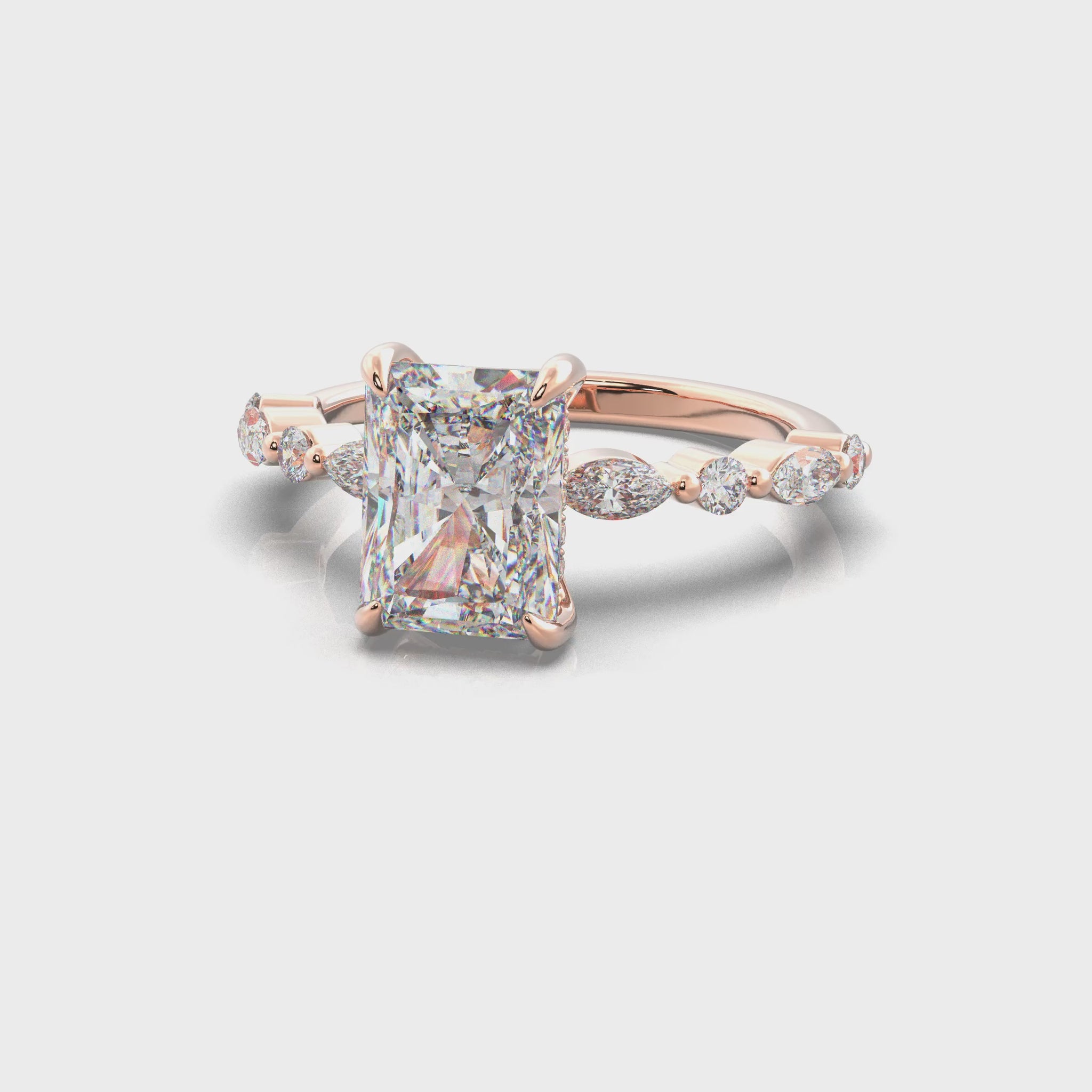 The Ariana is a bold, elegant ring with a modern twist. Featuring a hidden halo and a band partially set with marquise and round-cut diamonds in shared prongs, it delivers serious sparkle from every angle. A customer favorite for its unique mix of shapes and timeless design, The Ariana is made to stand out—and stand the test of time.