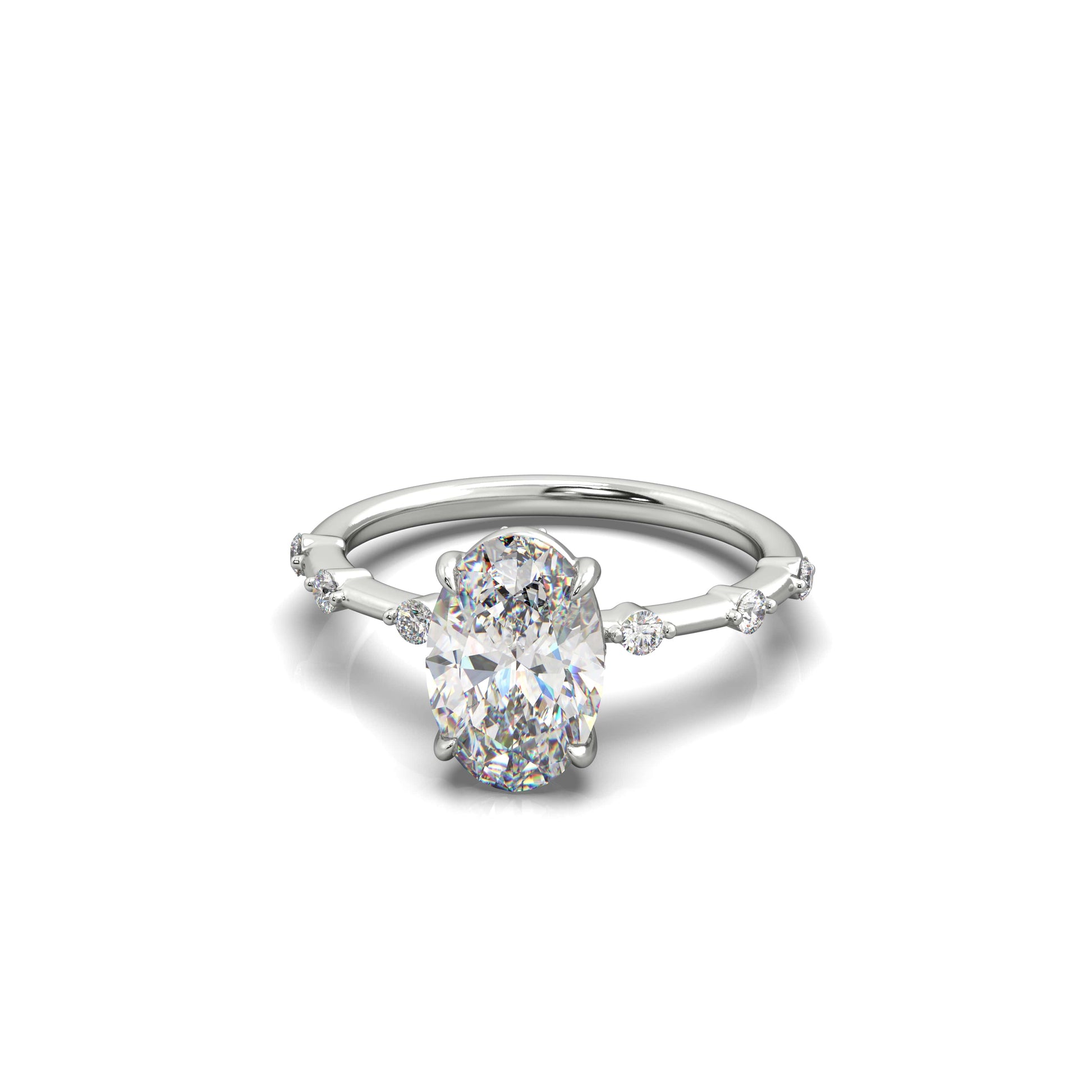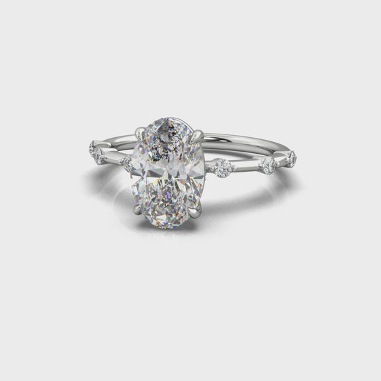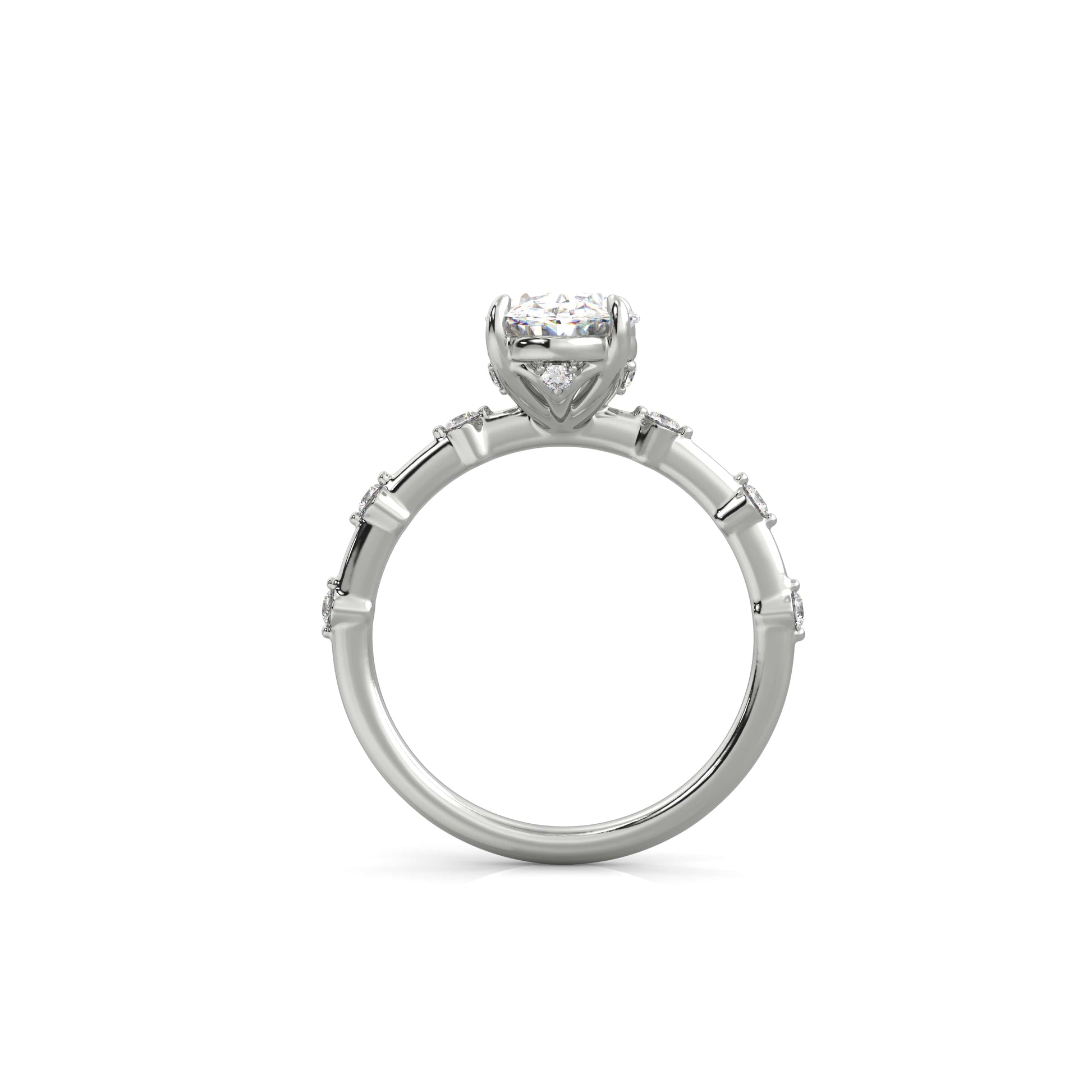 A graceful balance of delicacy and brilliance. The Elara features a slender band accented with six pavé set diamonds along the shoulders, while four hidden micro diamonds beneath the center stone add a subtle sparkle from every angle. Designed to highlight the center diamond with understated elegance, this setting is refined, modern, and timeless the perfect expression of enduring love.