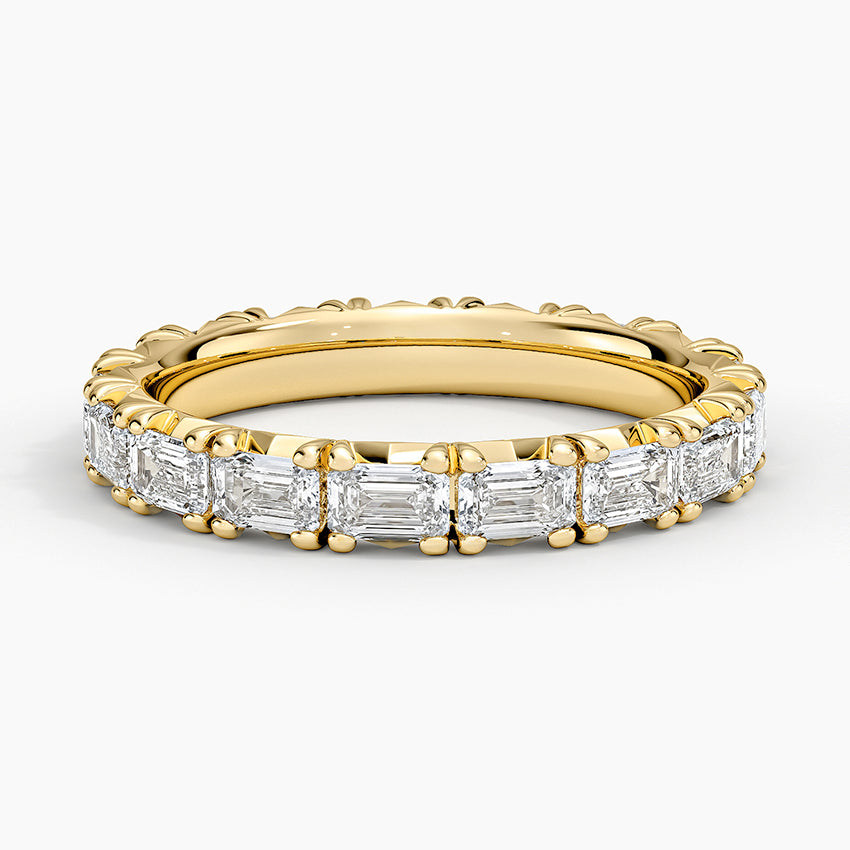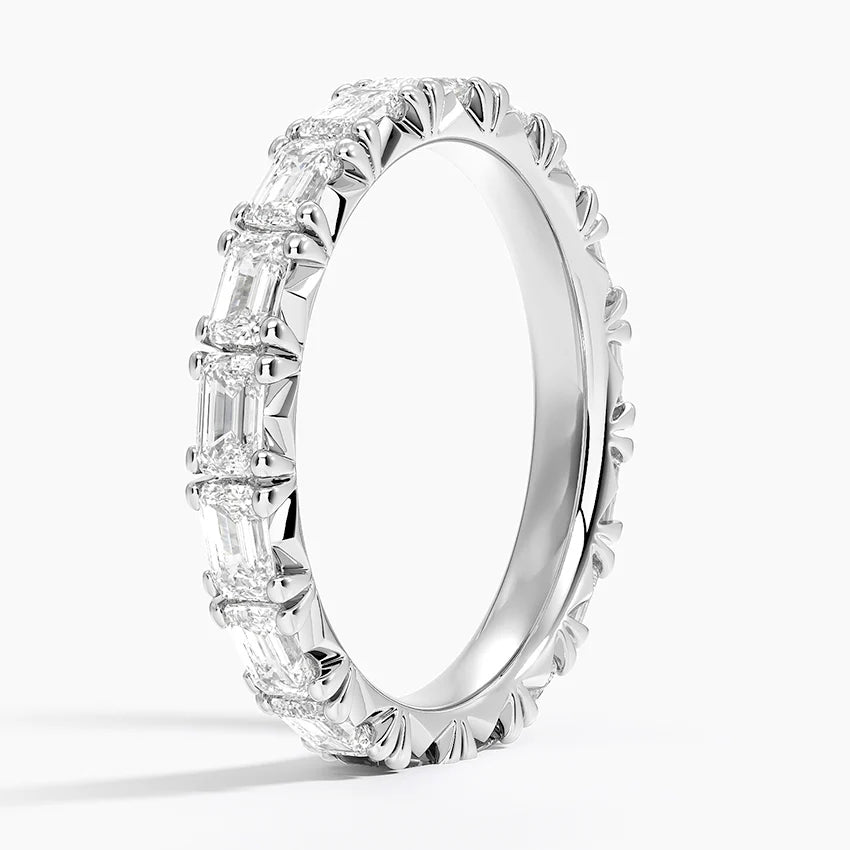 A bold take on a timeless design. Our Emerald Cut East-West Eternity Band features a seamless row of emerald-cut lab-grown diamonds, each set horizontally to create a striking, contemporary silhouette. With clean lines and mirror-like facets, this piece is a modern statement on forever.