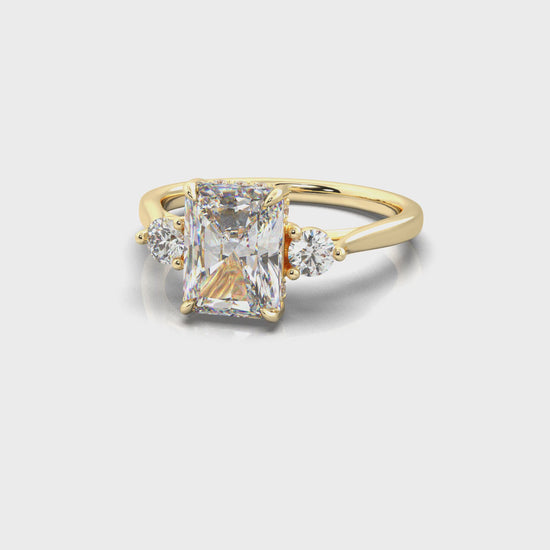 The Eva combines elegance with eye-catching sparkle. Featuring a gracefully structured setting and pavé-set diamond accents, it delivers a refined, graceful look. The rounded side stones enhance the overall brilliance and add a touch of drama, making The Eva a perfect blend of delicate detail and bold presence.