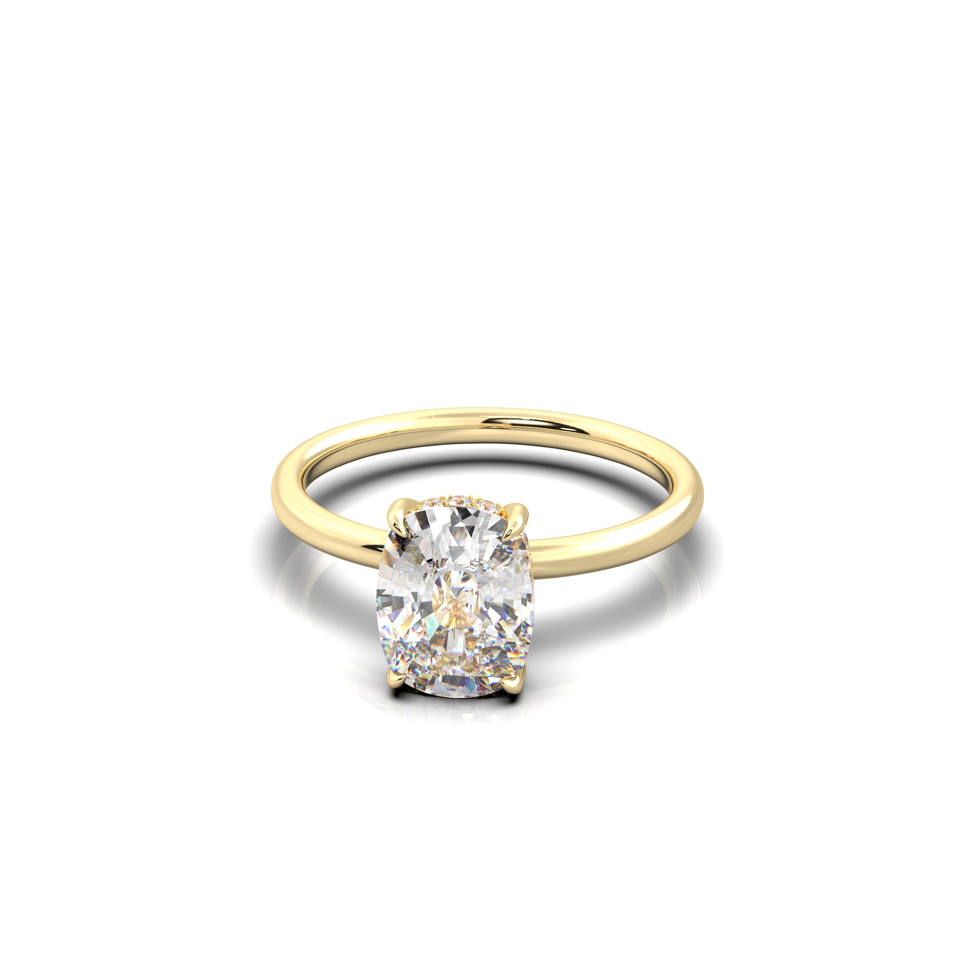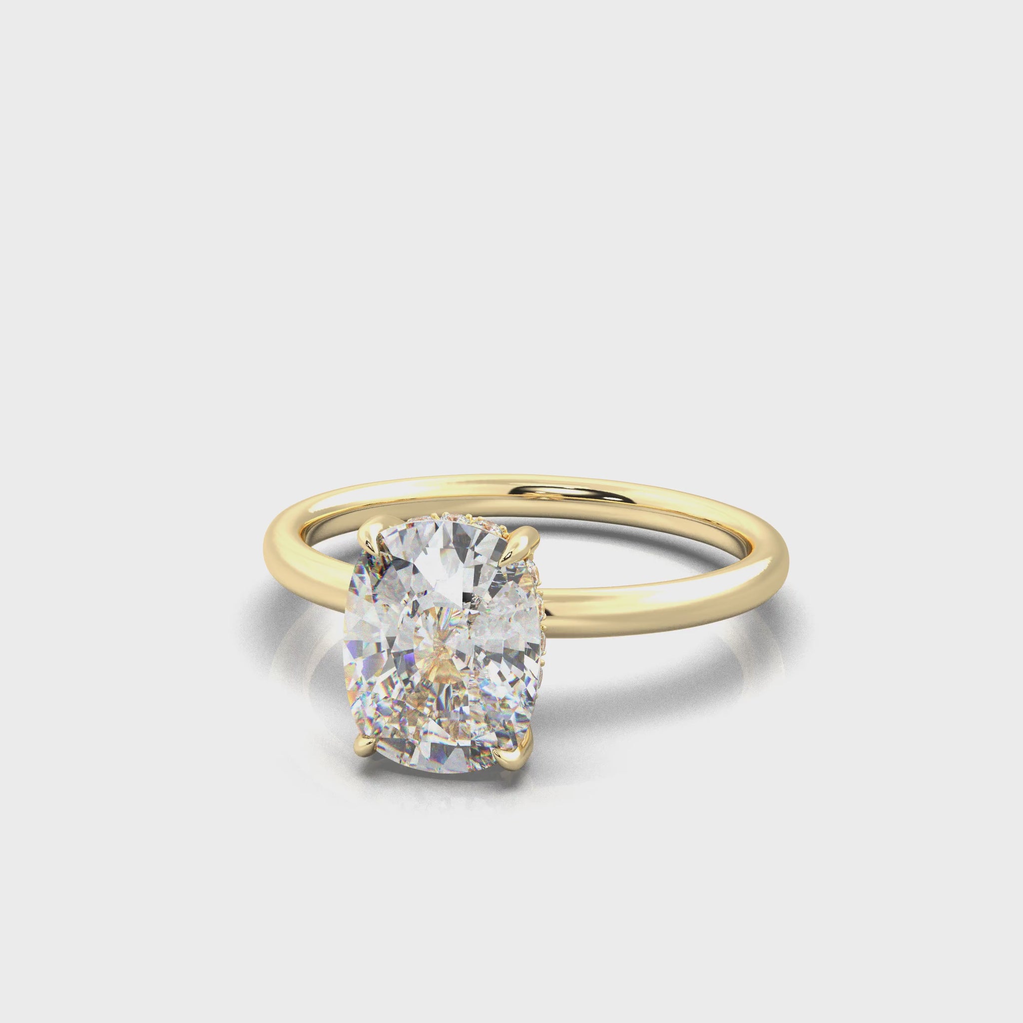 The Farah is a timeless solitaire design with a modern twist. Its sleek, slender band keeps the focus on the center stone, creating an effortlessly elegant look. A hidden halo adds a touch of sparkle beneath the surface—enhancing the brilliance without taking away from its classic beauty. Subtle, sophisticated, and full of meaning, The Farah is a beautiful symbol of lasting love.