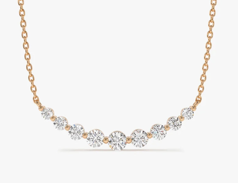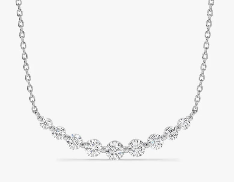 Effortless elegance with a modern touch. Our Floating Graduated Pendant features a curved bar of round brilliant lab-grown diamonds, gracefully tapering from large to small. Designed to appear weightless on the neckline, this pendant delivers refined sparkle that transitions seamlessly from day to evening.