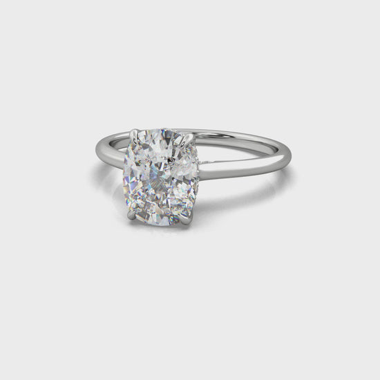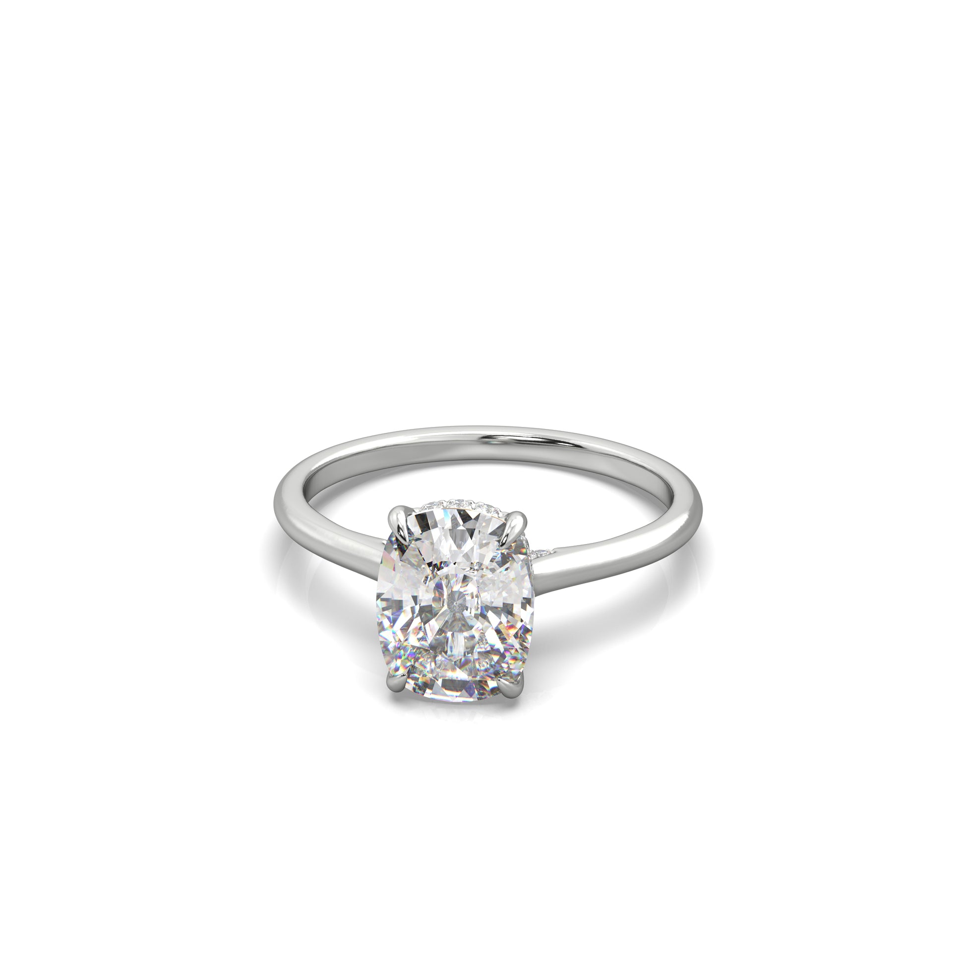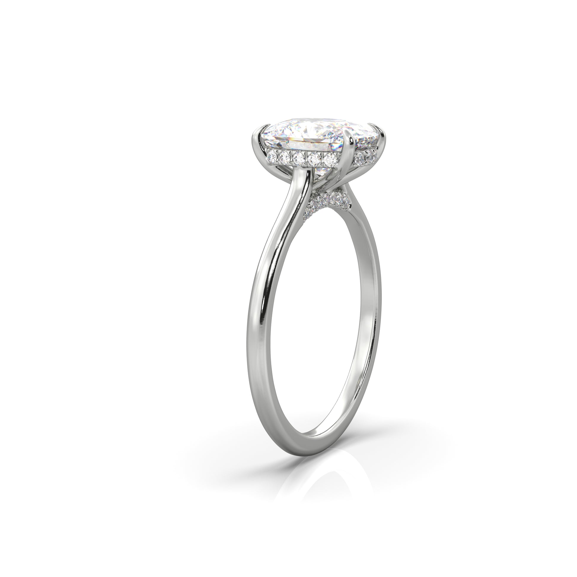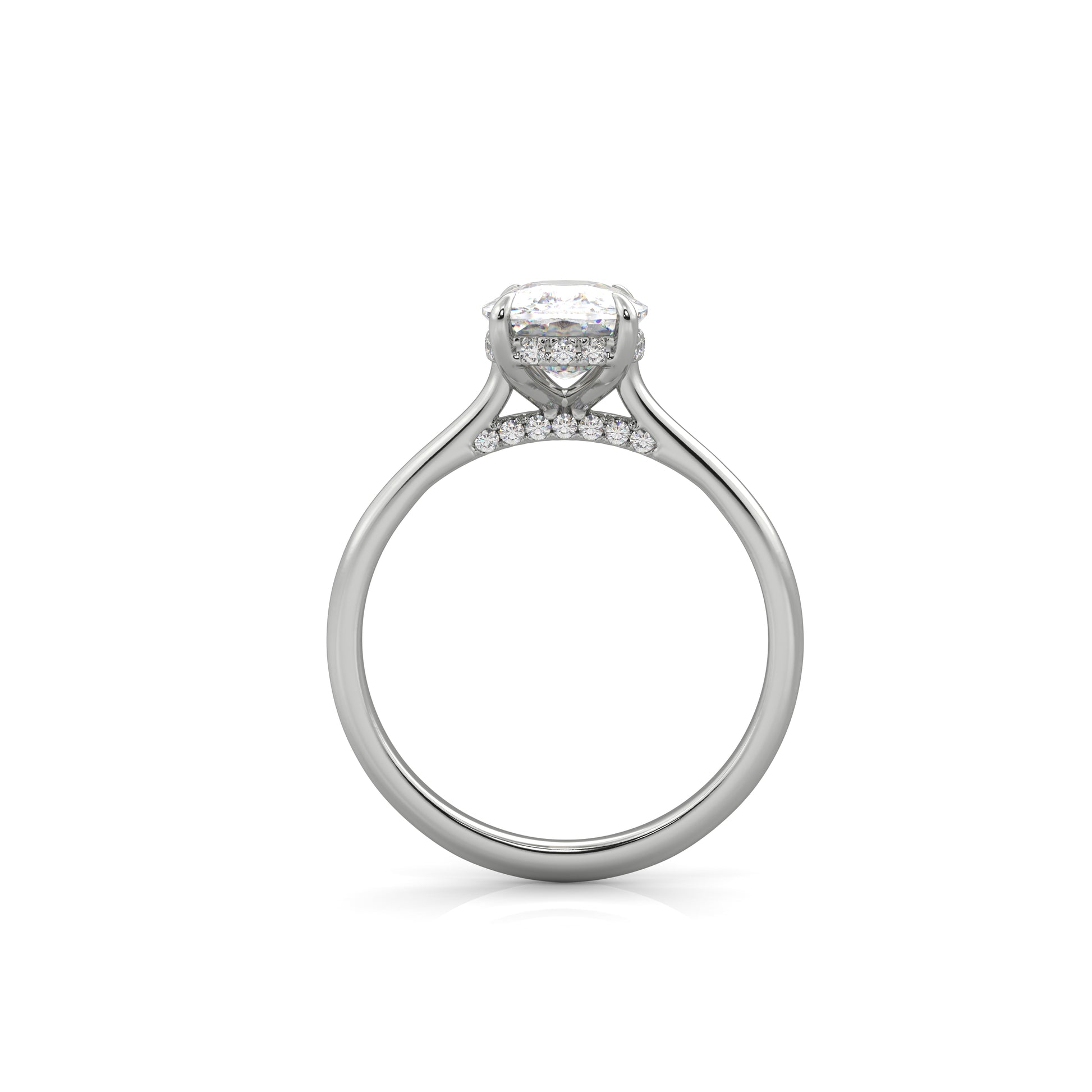 The Meena is a timeless cathedral solitaire with elegant details. Twin pavé rows and a polished band create a graceful silhouette, while a hidden halo adds a subtle sparkle beneath the claw-set center stone. Classic, versatile, and effortlessly stunning.