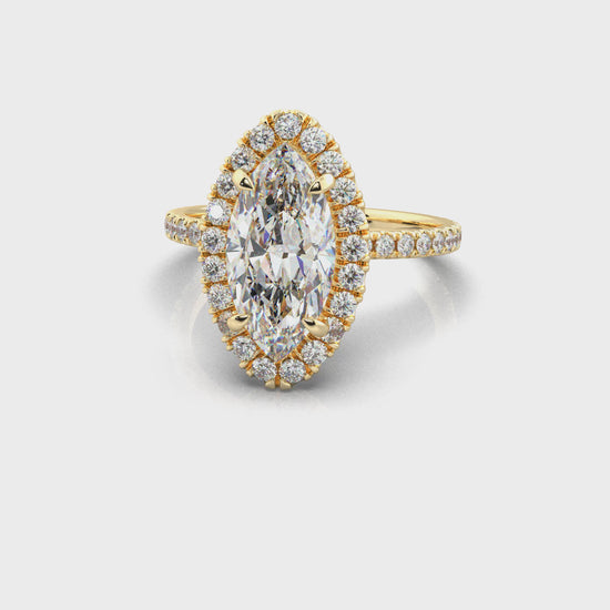 The Mila is a bold halo ring featuring pavé diamonds along the band, with additional diamonds set on the prongs for extra sparkle. Bold, brilliant, and built to stand out.