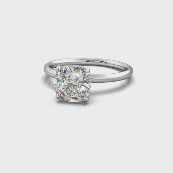 The Mona is a sleek solitaire with a modern edge. Its classic band is paired with a wraparound halo that curves around the center stone—delivering a fresh twist on tradition. Clean, striking, and effortlessly unique.