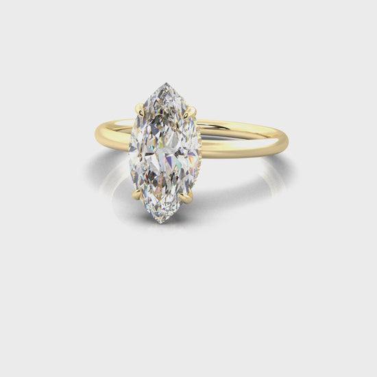 The Mona is a sleek solitaire with a modern edge. Its classic band is paired with a wraparound halo that curves around the center stone—delivering a fresh twist on tradition. Clean, striking, and effortlessly unique.