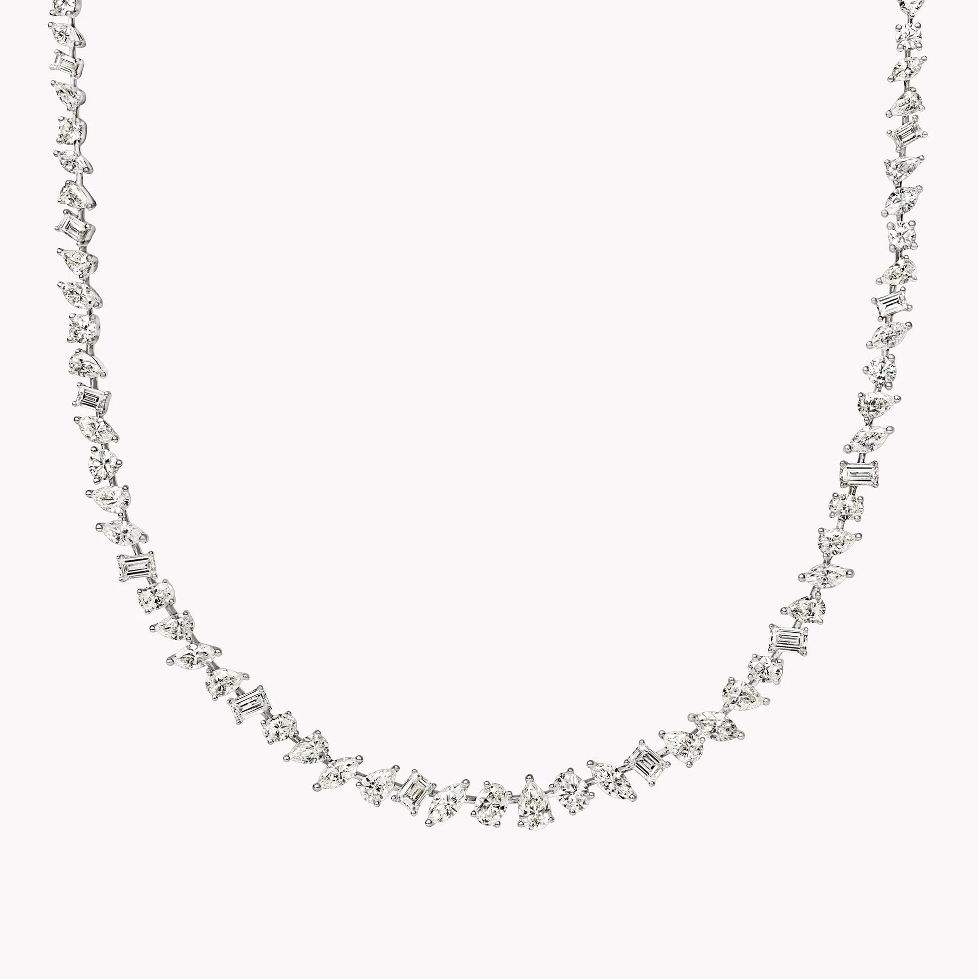 Distinctive and versatile. Our Multi-Shape Diamond Tennis Necklace showcases a striking combination of pear, round, emerald, marquise, and oval lab-grown diamonds, creating movement and dimension in a continuous line of brilliance. Designed to stand out from the classics, this necklace offers a fresh, modern take on tennis elegance.