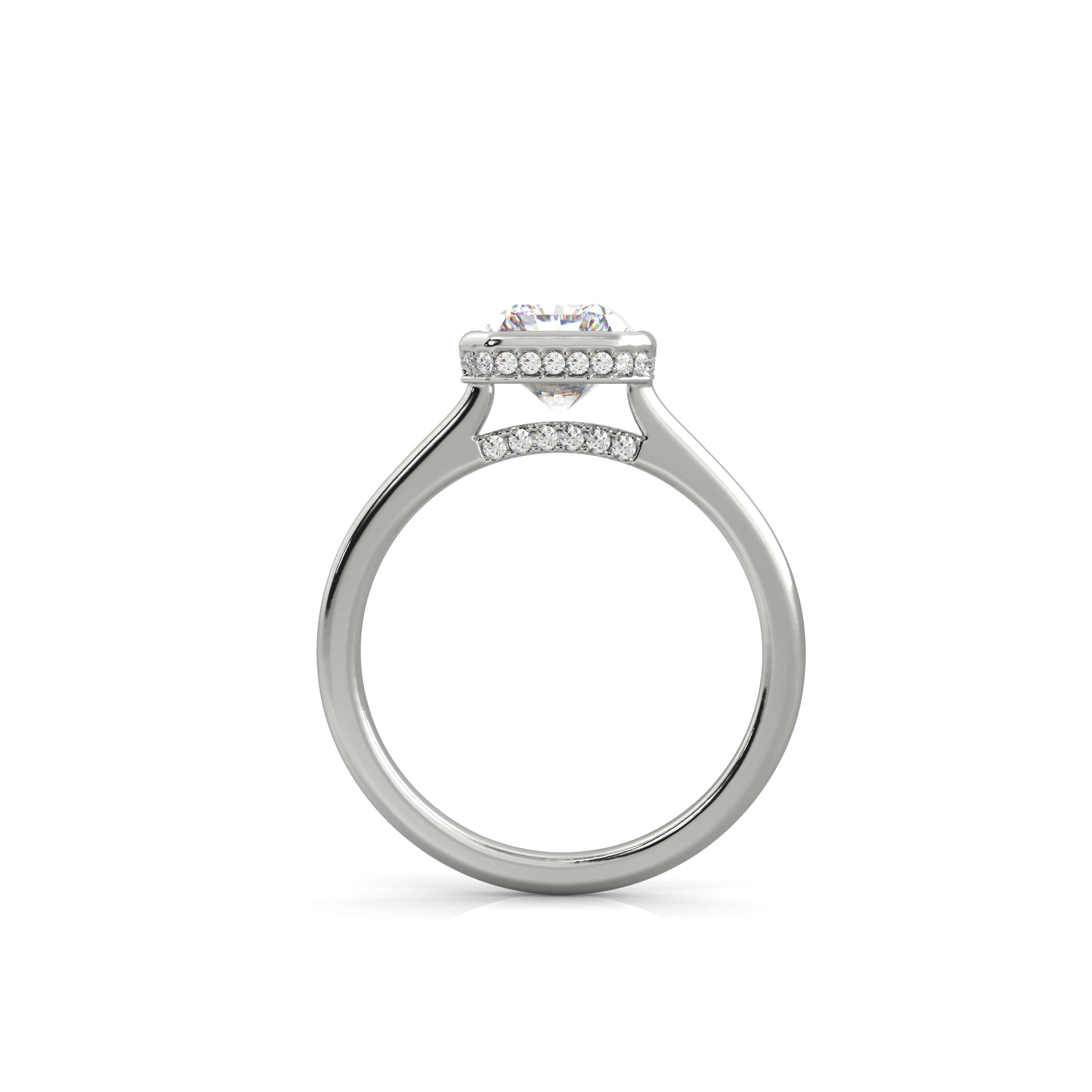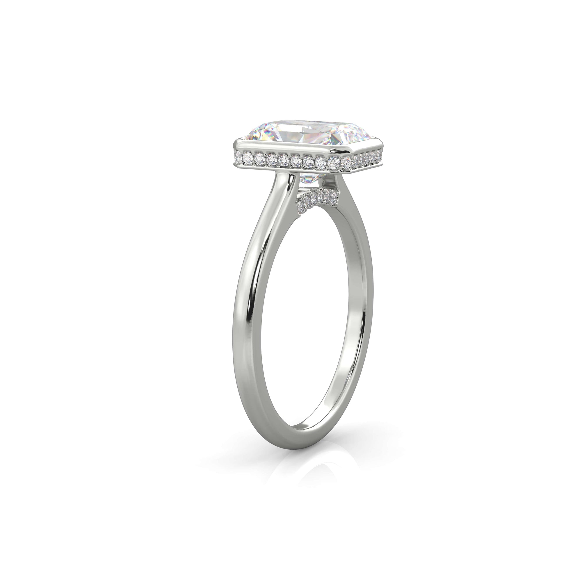 Refined, modern, and effortlessly elegant. The Noelle features a bezel set center diamond framed in a graceful cathedral setting, accented with a hidden halo and pavé diamonds along the cathedral for added brilliance. Sleek yet timeless, this design blends clean lines with delicate sparkle, making it a sophisticated symbol of love.