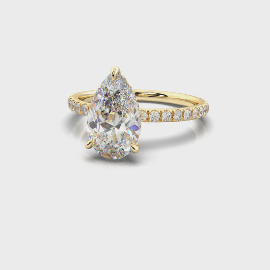 The Noor features a pavé diamond band paired with a wraparound halo that embraces the center stone in brilliance. A modern silhouette with timeless sparkle—refined, radiant, and unforgettable.