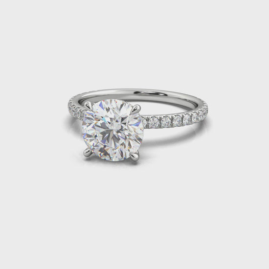 The Noor features a pavé diamond band paired with a wraparound halo that embraces the center stone in brilliance. A modern silhouette with timeless sparkle—refined, radiant, and unforgettable.