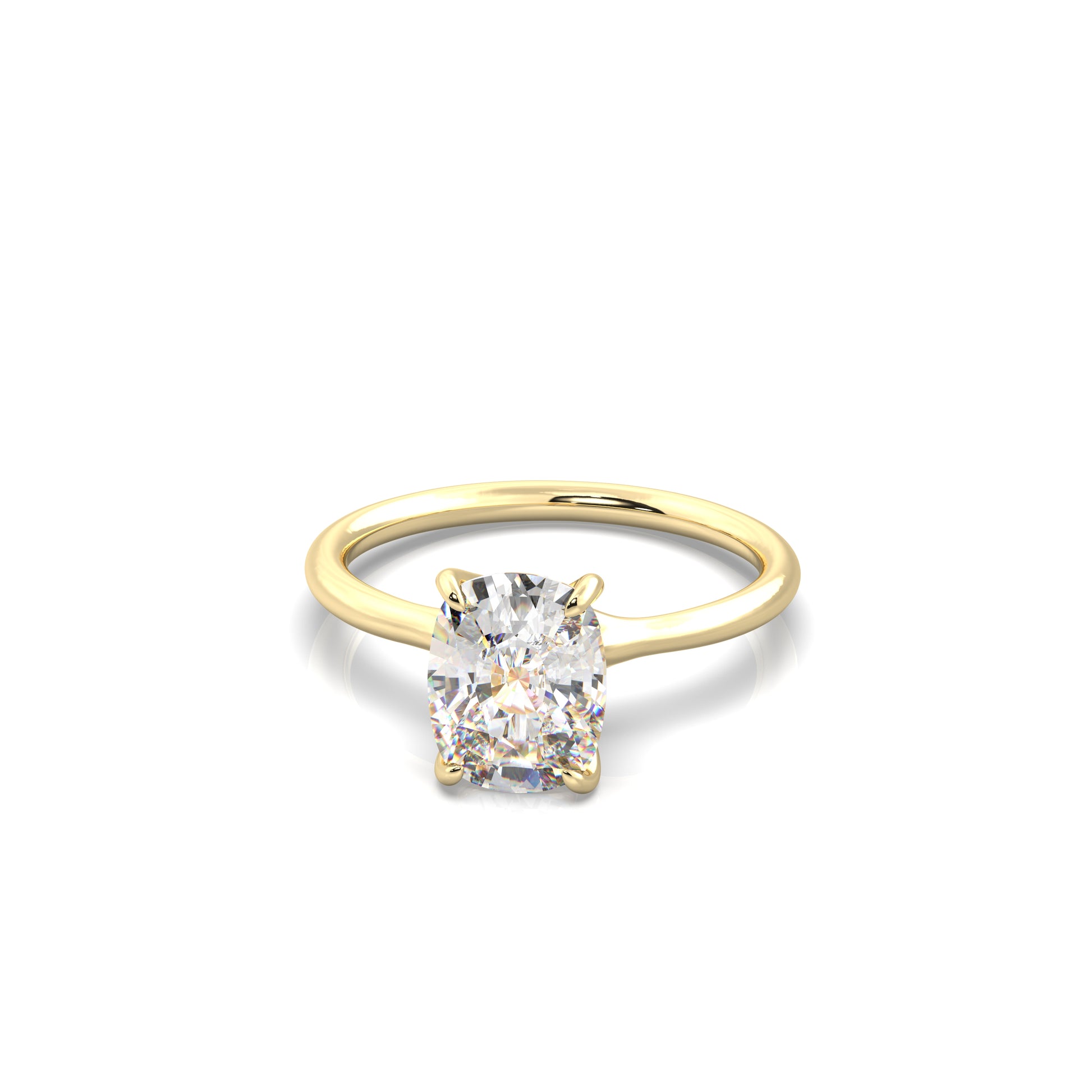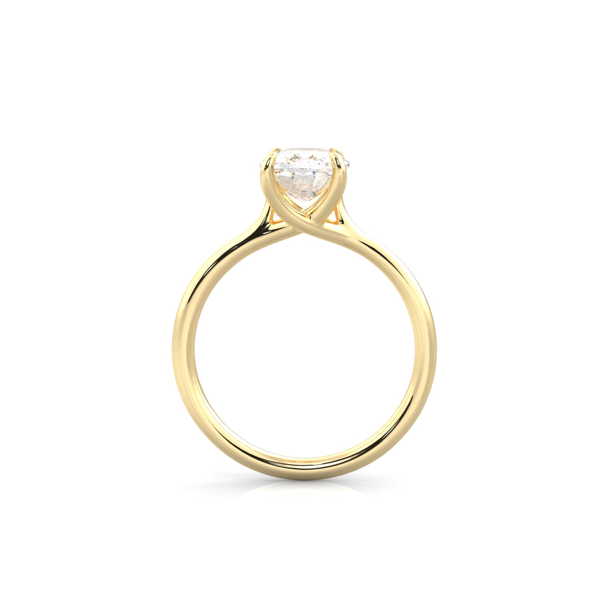 The Nora is a classic cathedral solitaire with refined simplicity. Its smooth band rises to meet delicate prongs, putting full focus on the center stone. Clean, elegant, and made to shine from every angle.