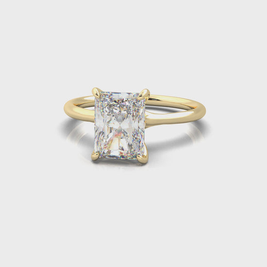 The Nora is a classic cathedral solitaire with refined simplicity. Its smooth band rises to meet delicate prongs, putting full focus on the center stone. Clean, elegant, and made to shine from every angle.