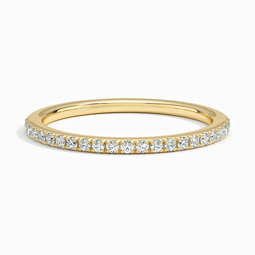 Refined sparkle with everyday wearability. Our Pavé Diamond Band features a row of hand-set lab-grown diamonds across the band, offering subtle brilliance with a sleek, low-profile design. Perfect as a wedding band, stacker, or delicate statement piece.